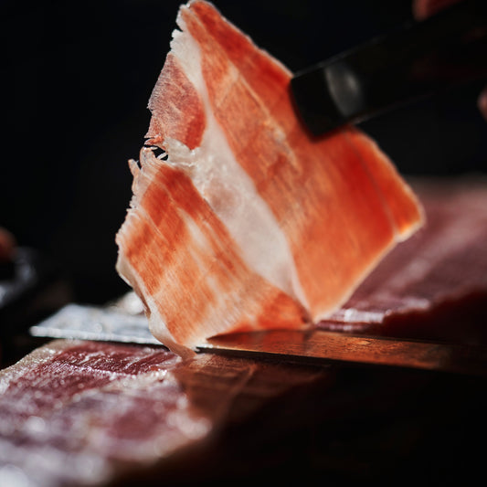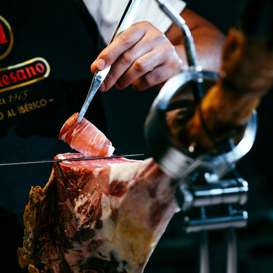 Jamón de Bellota ibérico 50% raza ibérica corte tradicional 28 sobres+puntas+huesos